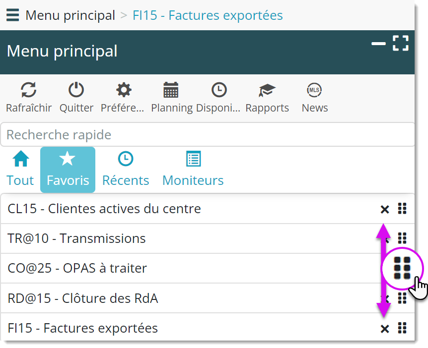 Triez vos favoris selon vos préférences. Le système mémorise l’ordre souhaité.